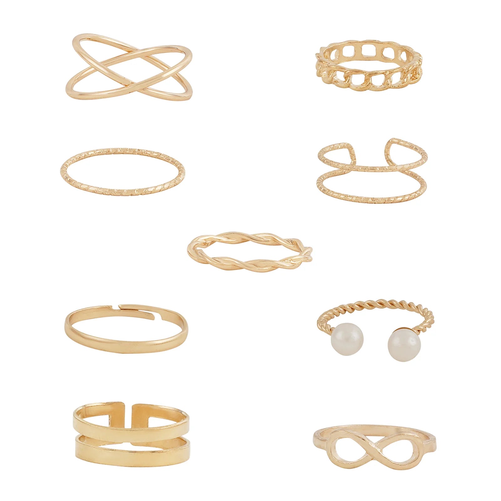 The polished gold finish adds sophistication and charm to the rings. Its warm, lustrous tone complements a wide range of outfits and skin tones, enhancing the overall look with a touch of elegance. The smooth surface catches the light beautifully, creating a subtle shimmer that elevates the style quotient without being overpowering.