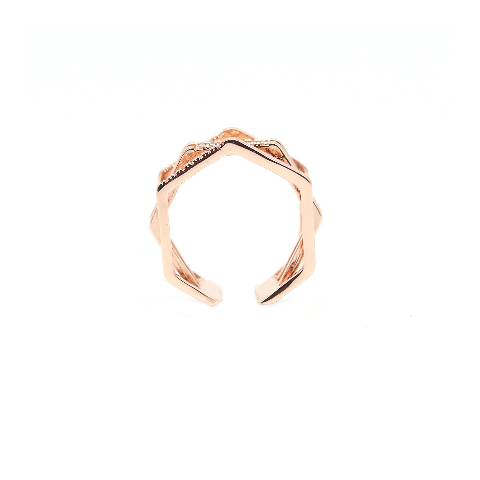 The rose gold finish is one of the most attractive features of this ring. Its warm, pinkish tone adds a soft, feminine charm, enhancing the wearer’s style with a touch of luxury. The polished surface reflects light beautifully, giving the ring a subtle sparkle that draws attention to the hand without being too flashy.