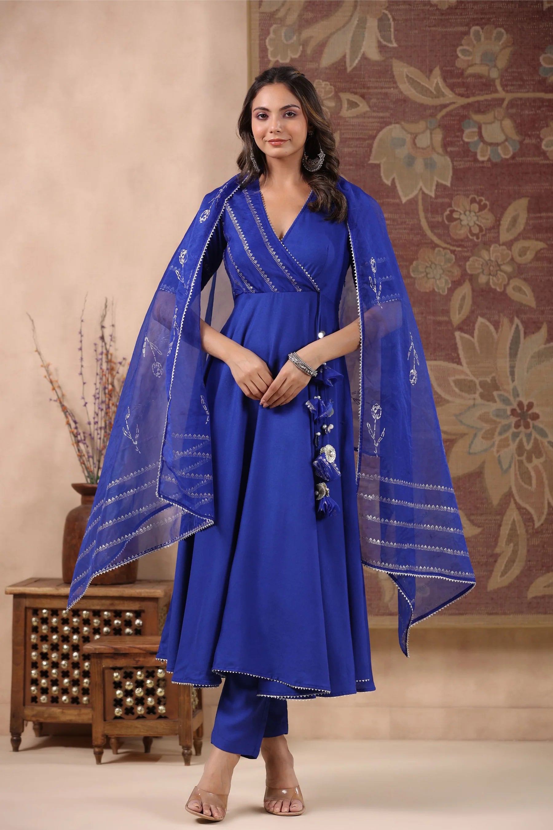 The handblock printing is the standout feature of this suit set. Each motif is applied with precision, reflecting the skill and craftsmanship of traditional artisans. The prints add texture and visual interest to the outfit, while their vibrant yet balanced colors enhance its festive appeal. This artisanal detailing makes the Jashn suit set a unique choice for cultural events, giving the wearer an authentic and stylish look.
