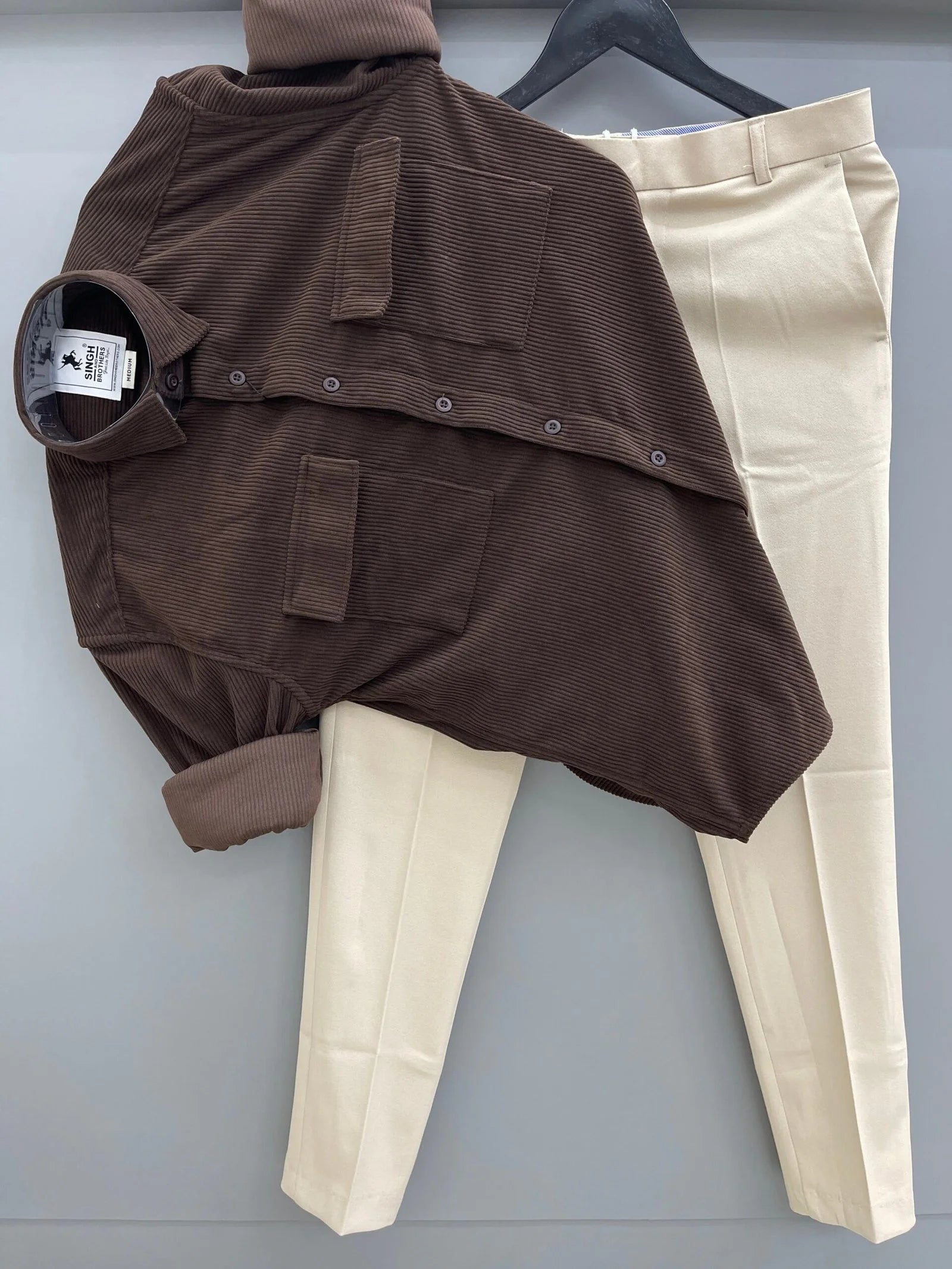 Soft Corduroy Shirt and Trouser Set for Men Double Pocket Look